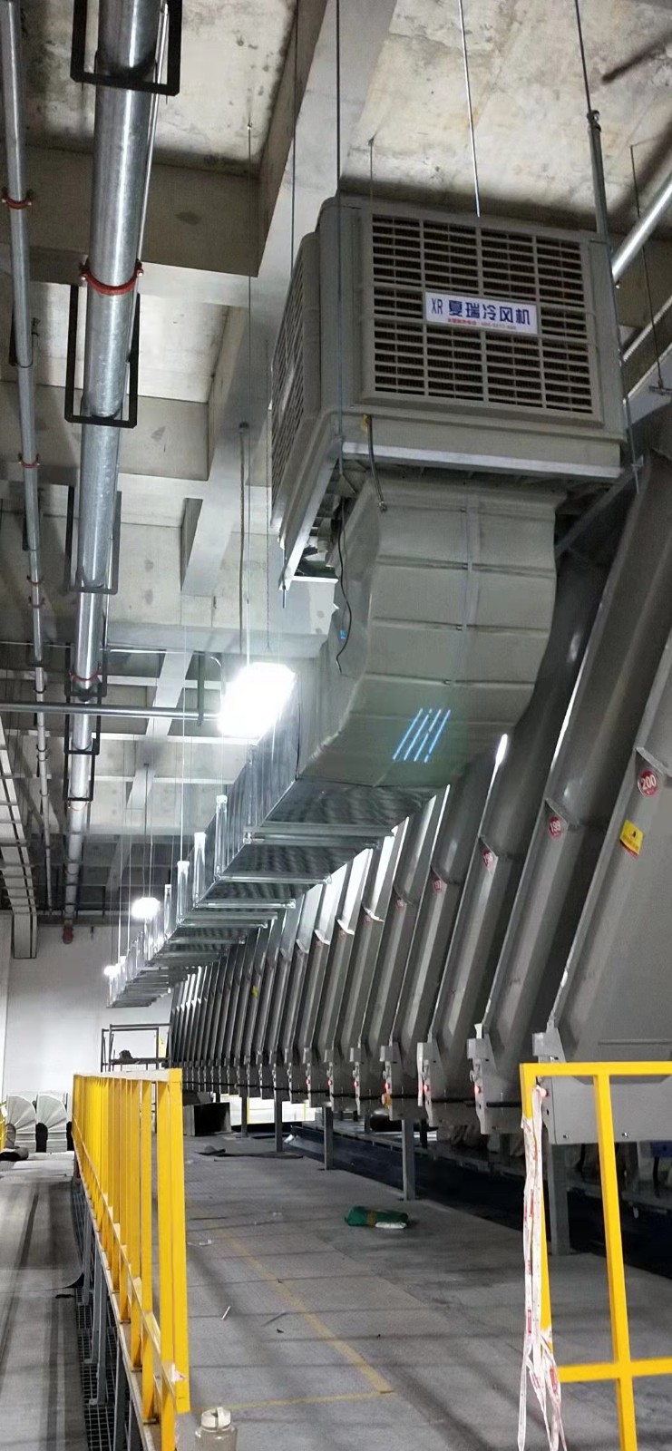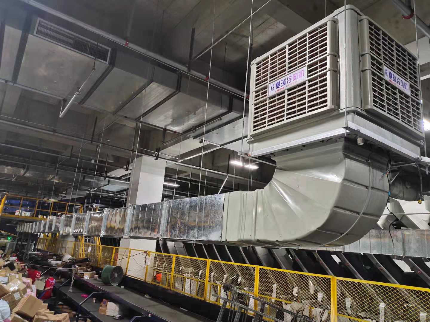 鄭州百世快遞運轉中心為于中牟普洛斯物流園,一期和二期面積一共有8萬平方目前冷風系統和大吊扇已經交付使用,效果達到了客戶的滿意。